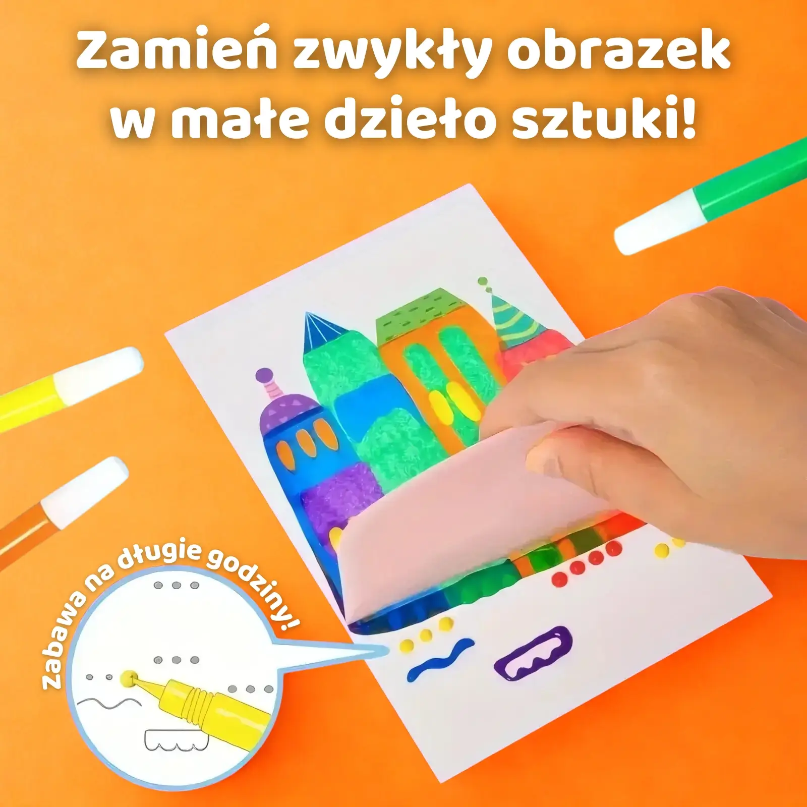 Zwykłe kredki i kartka to za mało? Dzięki Dotti każdy rysunek zmienia się w barwne i magiczne dzieło sztuki, które zachwyca dzieci i rodziców. To prosta zabawa, która rozwija kreatywność, uczy cierpliwości i daje natychmiastowy efekt WOW.