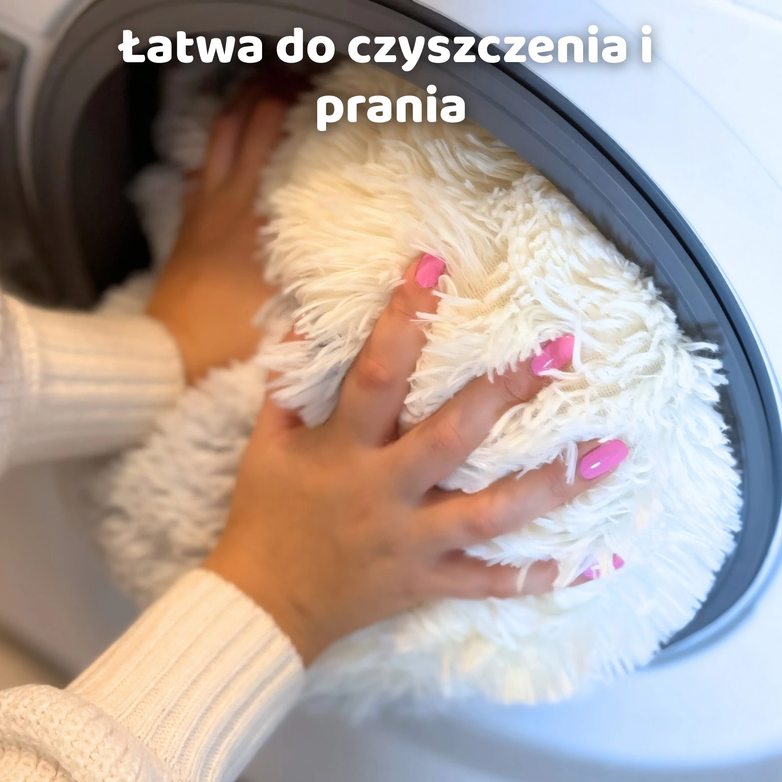 Legowisko możesz prać w pralce w niskiej temperaturze. Materiał szybko schnie i zachowuje miękkość.